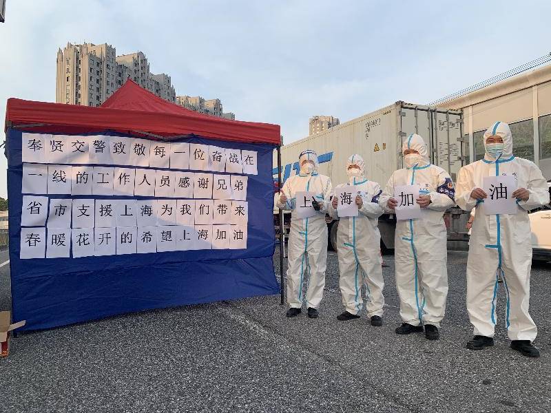 眼見多日來物資匱乏,中午時分,在附近執(zhí)勤的奉賢交警支隊機動大隊的民警們就主動勻出自己的幾份客飯,提供給幾位滯留的駕駛員,并告知他們可以前往光明、莊行服務站進行核酸檢測等便利政策,受到駕駛員感謝。