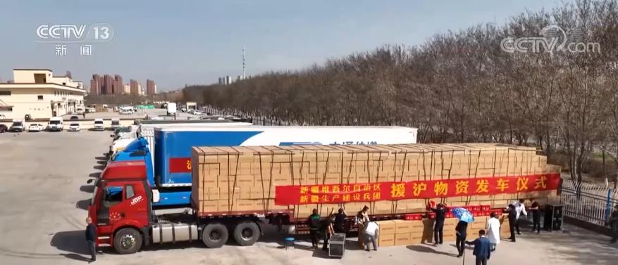 4月7日下午4時,由新疆維吾爾自治區(qū)及新疆生產(chǎn)建設(shè)兵團籌備的特色干果、馕等10萬份愛心物資從烏魯木齊裝車發(fā)往上海。