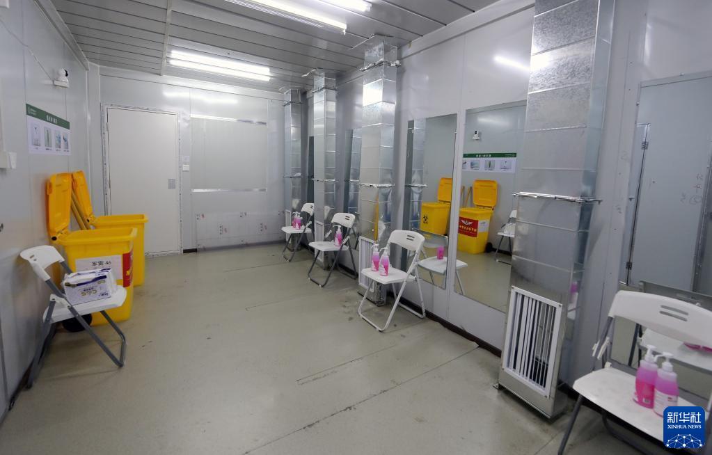 4月9日,醫(yī)務人員通道內防疫設施已經(jīng)準備就位。新華社記者 李賀 攝