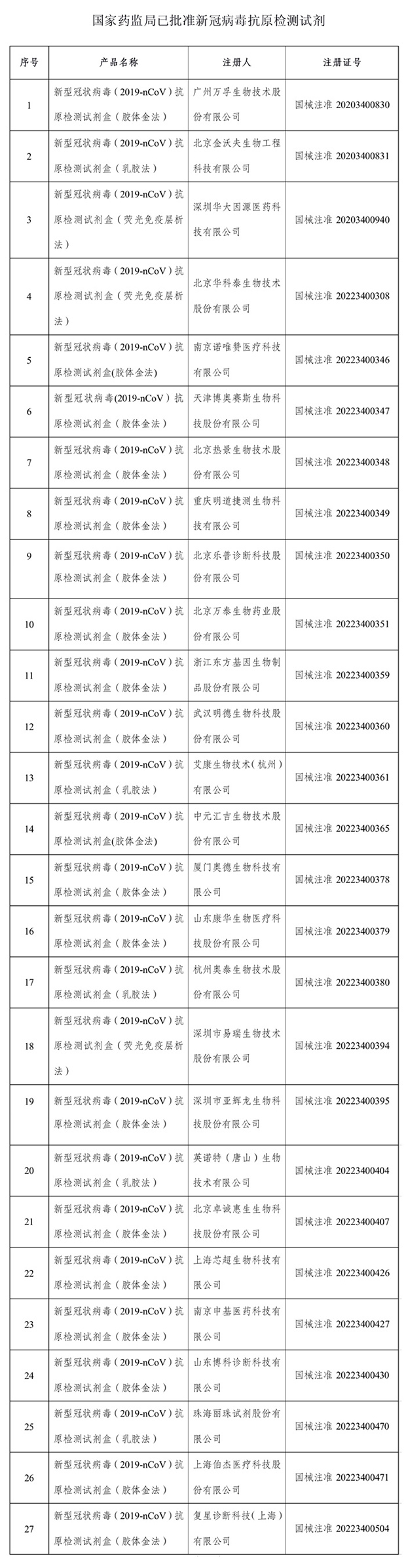 國(guó)家藥監(jiān)局已批準(zhǔn)27個(gè)新冠病毒抗原檢測(cè)試劑