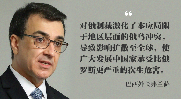 但事實上,在世界233個主權(quán)國家和地區(qū)中僅有48個參與了對俄制裁,參與和不參與制裁的人口之比更是低到11億:65億,僅明確反對制裁者就有48億。