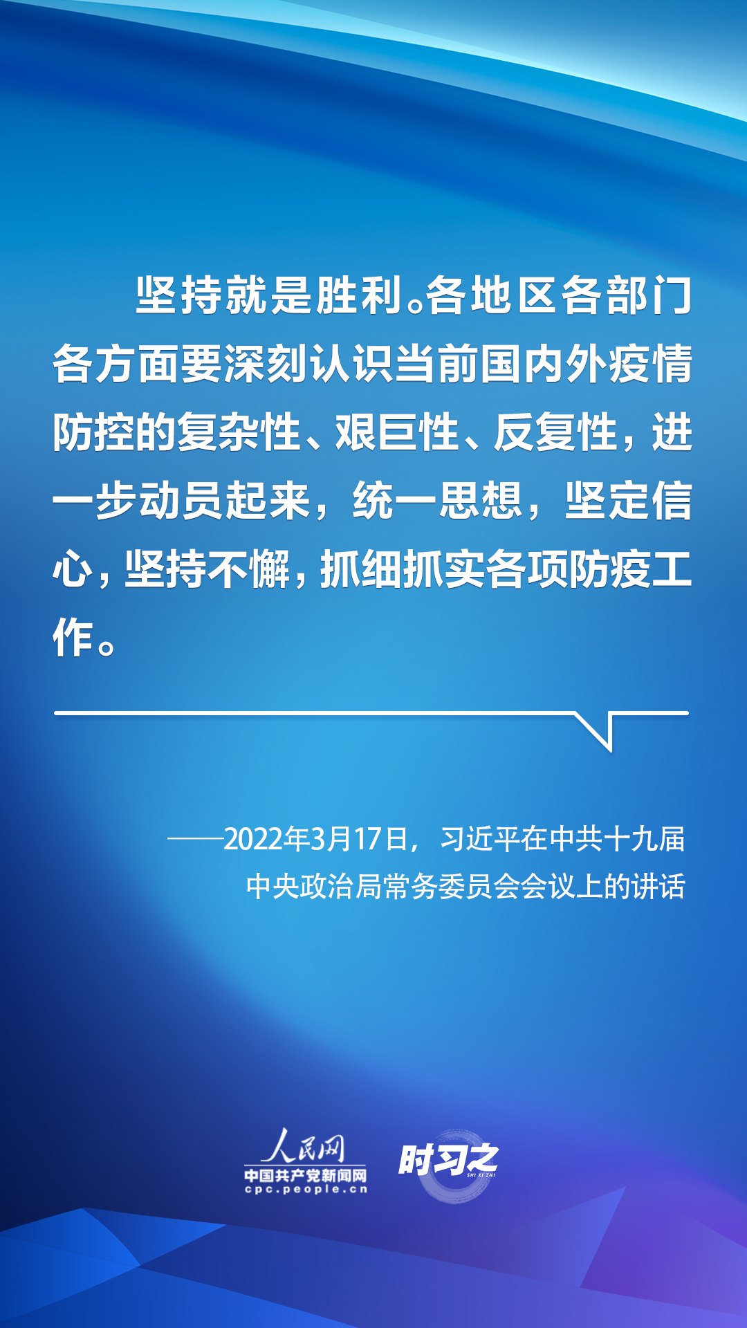 當(dāng)前,我國防疫抗疫工作依然面臨嚴(yán)峻挑戰(zhàn)。面對(duì)復(fù)雜多變的疫情形勢,習(xí)近平總書記強(qiáng)調(diào),堅(jiān)持就是勝利。各地區(qū)各部門各方面要深刻認(rèn)識(shí)當(dāng)前國內(nèi)外疫情防控的復(fù)雜性、艱巨性、反復(fù)性,進(jìn)一步動(dòng)員起來,統(tǒng)一思想,堅(jiān)定信心,堅(jiān)持不懈,抓細(xì)抓實(shí)各項(xiàng)防疫工作。