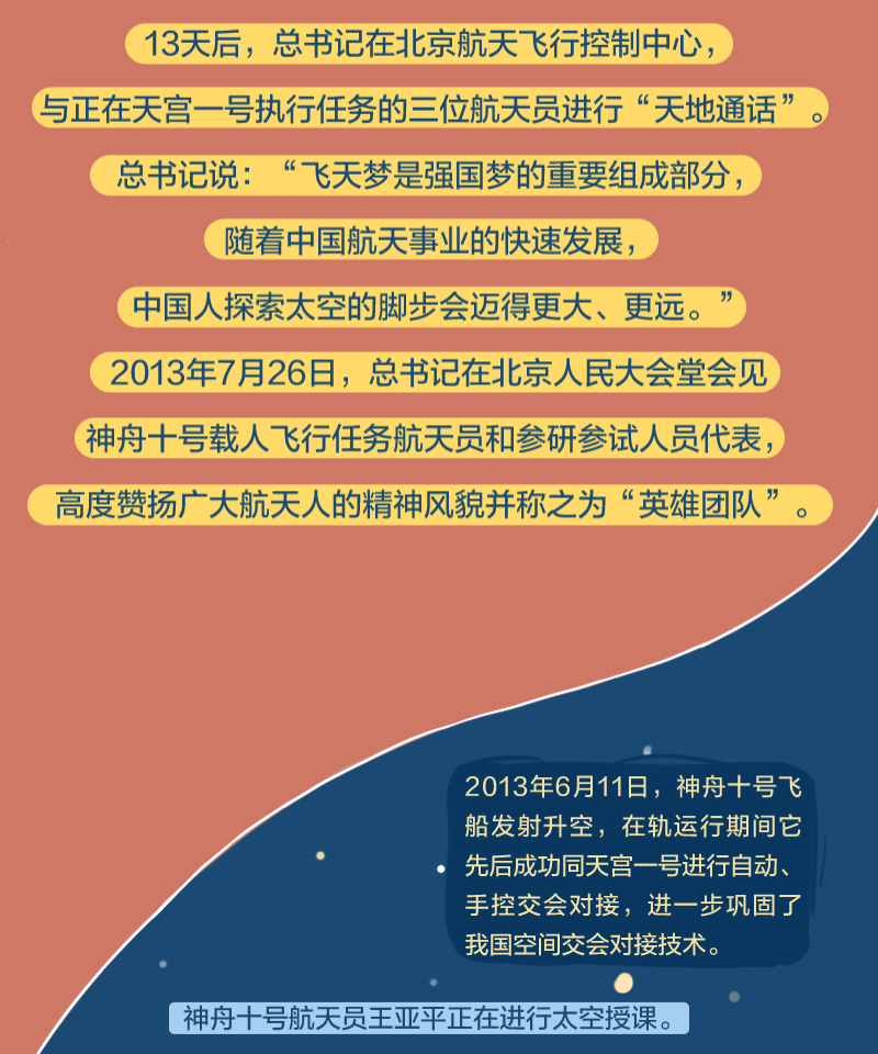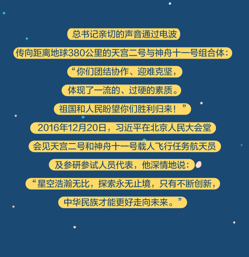 黨的十八大以來(lái),總書記始終高度關(guān)注我國(guó)航天事業(yè)發(fā)展,多次同執(zhí)行任務(wù)的航天員展開(kāi)“天地通話”、給參與“東方紅一號(hào)”任務(wù)的老科學(xué)家回信、親切接見(jiàn)航天工作者、深情寄語(yǔ)航天人……