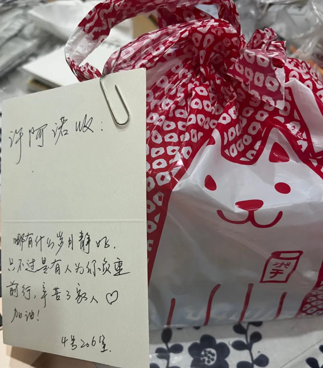 忙碌一天回到家時(shí),看到家門口鄰居留下的稀缺物資(飲料、餅干、蛋黃酥),瞬間眼淚就下來(lái)了……就是這樣一群可愛的人,在我們無(wú)數(shù)次想放棄的時(shí)候,拉住了我們。
