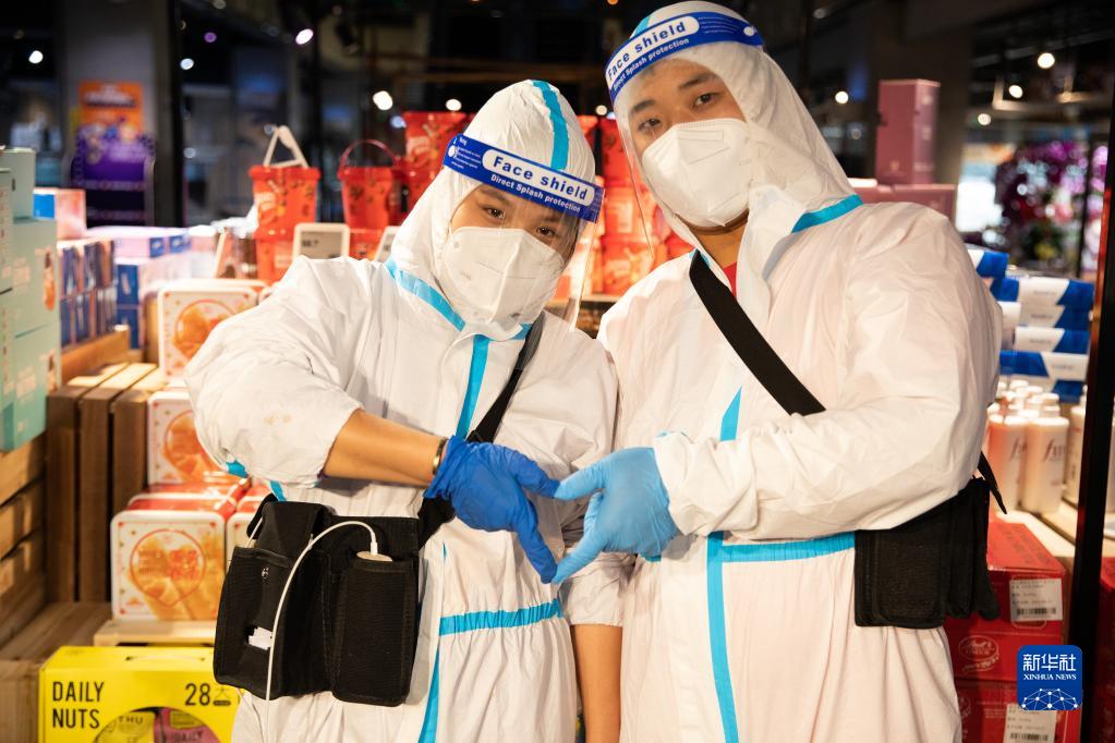曹冉和徐清秋夫婦是盒馬成都一家門(mén)店的員工,兩人都是“Z世代”(一般指出生于1995年至2009年)的年輕人。曹冉負(fù)責(zé)理貨盤(pán)點(diǎn),徐清秋負(fù)責(zé)揀貨。4月13日原本是兩人約定拍婚紗照的日子,小兩口一商量,臨時(shí)決定取消了婚紗照的拍攝,一起隨團(tuán)隊(duì)前往上海,幫助上海門(mén)店加速恢復(fù)運(yùn)轉(zhuǎn)。他們說(shuō):“夫妻一起上陣,反而沒(méi)牽掛、負(fù)擔(dān),可以做更有意義的事!彼麄兤诖虾R咔樵缛战Y(jié)束,可以在上海度蜜月。新華社記者 金立旺 攝