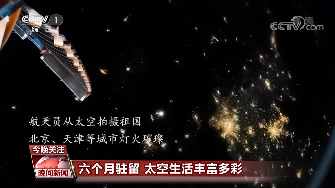 為了讓航天員能吃到香噴噴的餃子,地面科技人員提前準(zhǔn)備了3種餡:豬肉白菜餡、鲅魚餡和黃花菜餡。晚上7時(shí)30分,中國(guó)空間站過境祖國(guó)上空,航天員王亞平拍攝下燈火璀璨、流光溢彩的神州大地。