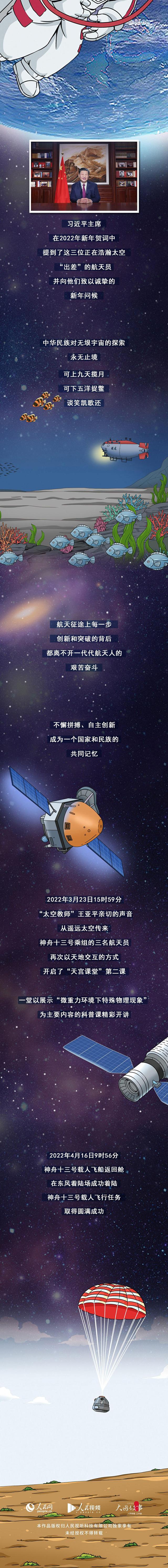 五十一年,從“東方紅一號”到神州十三號,烙印的是中華兒女對飛天夢的不懈追求。如果說“不知天上宮闕,今夕是何年”記錄著我們的好奇,那“可上九天攬月”則寄予著我們的夢想。 天宮課堂生動開講,干貨滿滿,揭曉未知的神秘;航天員們太空出差,妙趣橫生,延展探索的邊界;女航天員王亞平出艙活動,更是邁出了中國女性艙外太空行走的第一步。 而今,神舟十三號返回艙成功著陸,“太空出差三人組”平安歸家。如今精彩圓滿,未來屬于我們!