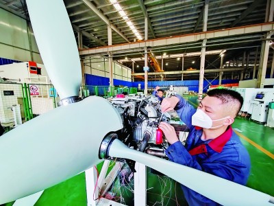 在合肥高新區(qū)南崗科技園的安徽羲禾航空科技有限公司螺旋槳生產中心,工人正在檢查產品。許慶勇攝/光明圖片