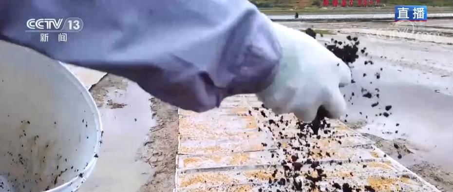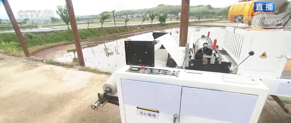 此時此刻在大田里,人們正在將一張張白紙平鋪在秧地上,就像了展開了一個個卷軸畫卷。您能猜出來他們在做什么嗎?答案在這兒來揭曉,這是一個播種神器,它的名字叫“印刷播種機”。這個寬約60厘米的白紙就是育秧紙,它是用可降解的材質(zhì)做成的。前面有一個滾筒,里面裝的是特制的淀粉膠,按照之前設(shè)置好的行間距,淀粉膠會被均勻地印刷在育秧紙上,伴隨著機器向前運動,種子會被淀粉膠粘在育秧紙上,這個時候的育秧紙就可以裁下來放在水田里進行播種。上面再鋪上一層營養(yǎng)土。這種技術(shù)每小時可以完成60畝大田的播種,相比于人工,它不僅提升了效率,而且還節(jié)約了30%的種子。我身后正在機插的秧苗,就是通過這種方式培育出來的。看得出來,當(dāng)?shù)氐霓r(nóng)民個個都是農(nóng)機高手,不管是耕田機、播種機、插秧機,還是無人機,可以說是樣樣精通。