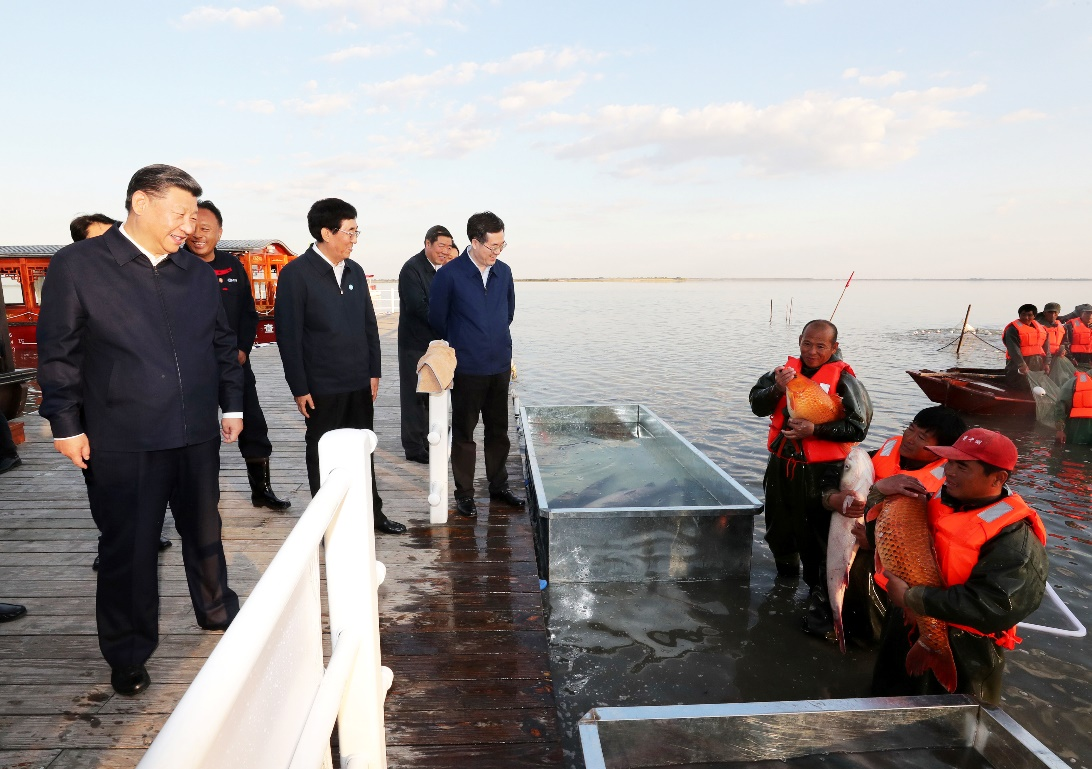 2018年9月26日下午,習(xí)近平在吉林查干湖了解漁民捕撈作業(yè)情況。新華社記者 鞠鵬 攝