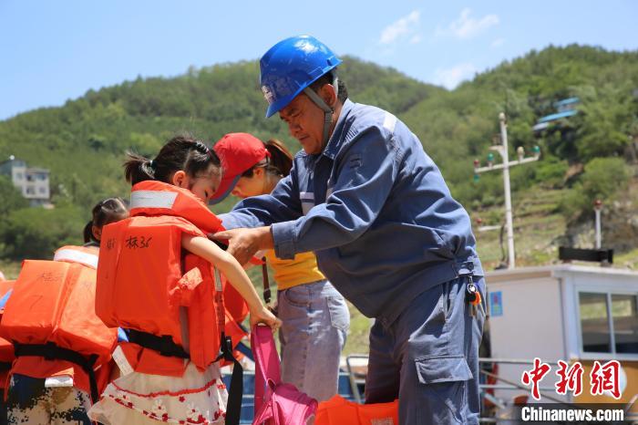 王仲吉給小朋友穿上救生衣 百色隆林供電局 供圖