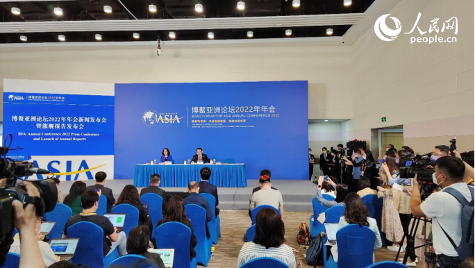 博鰲亞洲論壇2022年年會首場新聞發(fā)布會現(xiàn)場。人民網(wǎng)記者 許維娜攝