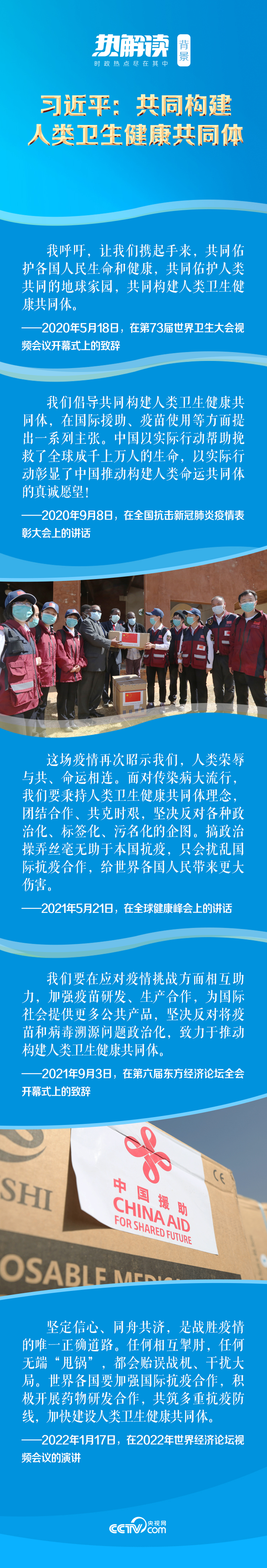 2020年3月,在致法國總統(tǒng)馬克龍的慰問電中,習(xí)近平主席首次提出了“人類衛(wèi)生健康共同體”理念。此后,習(xí)主席多次在國際國內(nèi)重大場合重申這一理念。