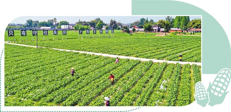 近日,在四川省眉山市青神縣青竹街道季時壩村,村民在給玉米和大豆施肥。新華社記者 王 曦攝