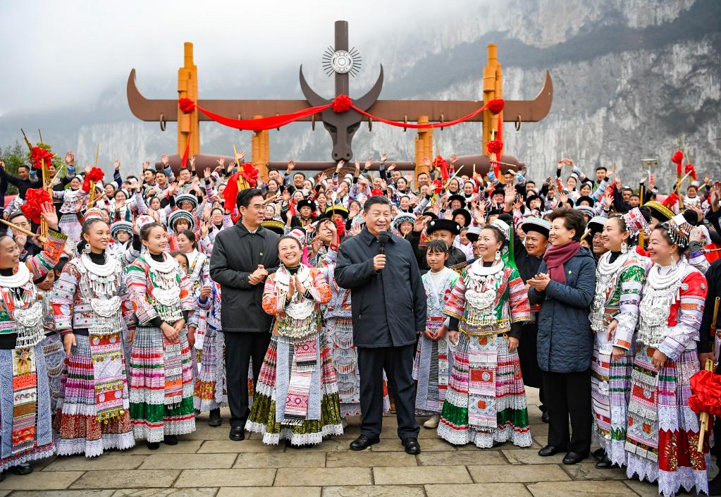 立春時(shí)節(jié),烏蒙山腹地細(xì)雨綿綿,青山如黛。沿著蜿蜒曲折的山路,越過一道道山梁一道道彎,習(xí)近平總書記來到深山大江邊的苗家小村,一排整齊有致的白色小樓映入眼簾。