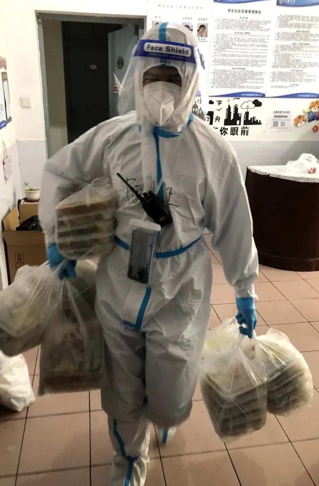 4月中旬,上海氣溫反復(fù),有時(shí)大雨傾盆,有幾天最高溫度近30攝氏度;貞浧鹉谴胃邷靥斓娜蝿(wù),趙永吉記憶猶新:“為了及時(shí)將餐飯送到學(xué)生們手中,隊(duì)員們一個(gè)臺階接一個(gè)臺階、一層又一層,上樓、下樓……循環(huán)往復(fù)地爬樓梯,終于完成了發(fā)放。結(jié)束送餐的時(shí)候,脫掉防護(hù)服的我們就像是洗了一個(gè)熱水澡一樣。”