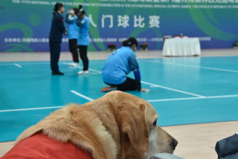 在比賽中安靜觀看主人比賽的導(dǎo)盲犬