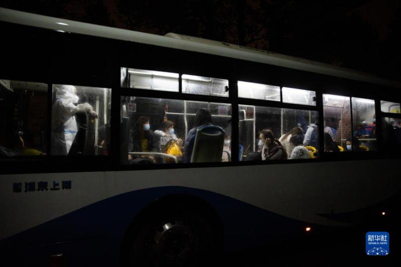 4月28日晚,有雨,在上海浦東北蔡鎮(zhèn),參加抗疫的工作者依然在忙碌。