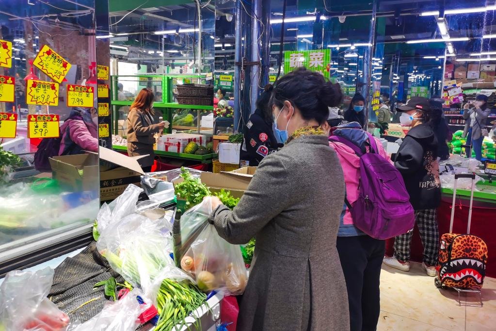 4月28日,在長(zhǎng)春市一處連鎖超市內(nèi),市民選購(gòu)蔬菜。新華社發(fā)