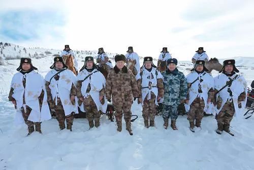 △2014年1月26日,習(xí)近平主席在內(nèi)蒙古阿爾山與邊防線上巡邏執(zhí)勤的官兵合影。