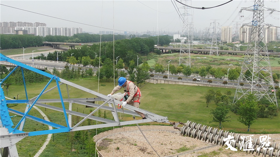 5月2日下午2點,國網(wǎng)南京供電公司輸電運檢室四班班長董智來到六合區(qū)河堤路,在一座高壓電線塔前停下,放下設(shè)備,整好裝備,準(zhǔn)備對電線塔其中一條輸電線路開展停電檢修,“這條線路主要保障南鋼生產(chǎn)用電,非常重要”。