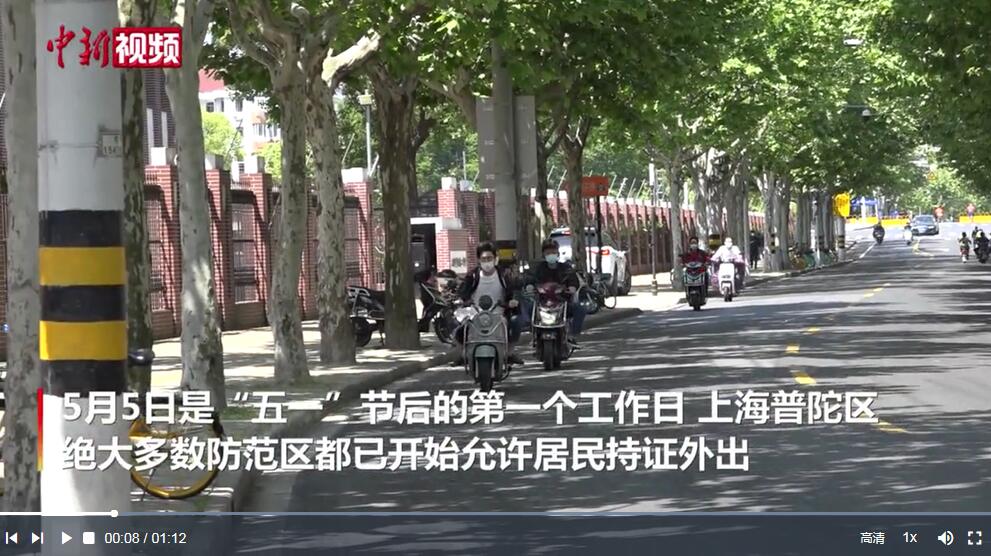 五一期間,上海宣布六個(gè)區(qū)社會(huì)面基本清零,其中唯一的中心城區(qū)便是普陀區(qū)。5月5日是五一節(jié)后第一個(gè)工作日,該區(qū)的絕大多數(shù)防范區(qū)都已經(jīng)開始允許居民持證外出。記者在普陀區(qū)曹楊街道看到,路上已有許多行人,按照規(guī)定,市民可以限時(shí)限戶在所在街鎮(zhèn)內(nèi)活動(dòng),并限時(shí)前往指定的超市、藥店。有市民告訴記者,出來走走感覺很舒服,盼上海早日解封。(記者 溫孟馨 制作 徐妙巧)