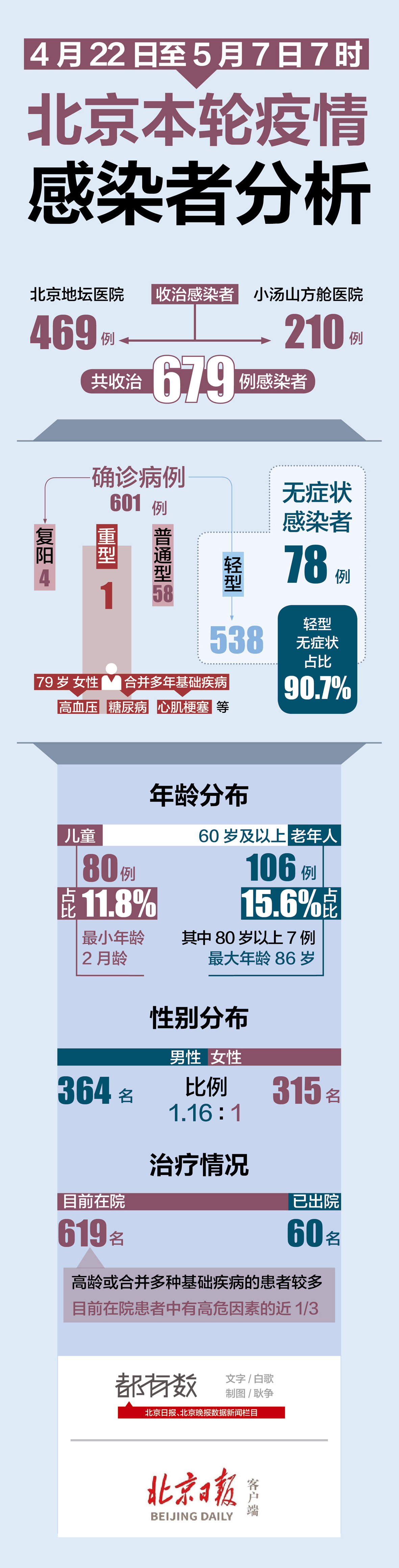 5月7日下午,北京市新冠肺炎疫情防控工作第327場新聞發(fā)布會披露了本輪疫情截至5月7日7時的感染者收治情況。重癥有多少例?無癥狀和輕癥占比多少?年齡分布有何特征?一圖讀懂——