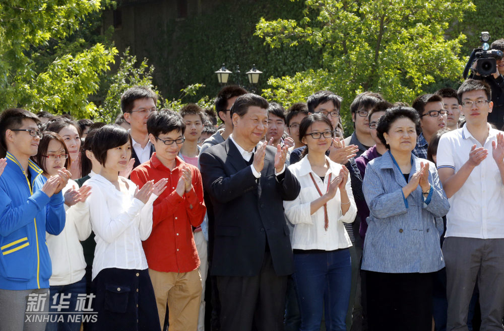 ↑2014年5月4日,習(xí)近平在北京大學(xué)考察。這是習(xí)近平在校園觀看北大師生紀(jì)念五四運(yùn)動(dòng)95周年青春詩會(huì)。