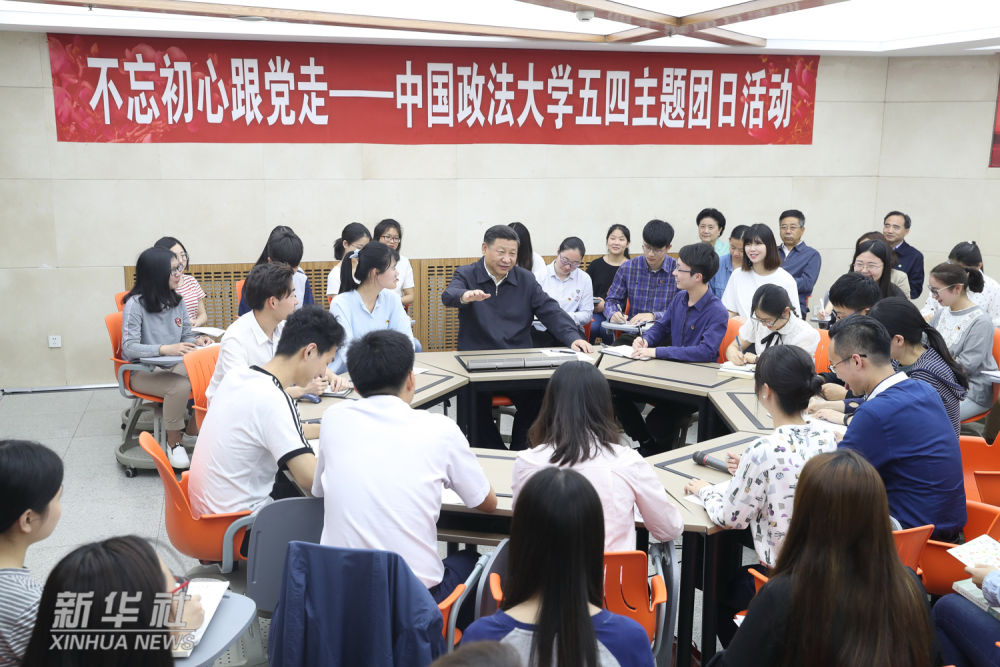 ↑2017年5月3日,習(xí)近平來到中國政法大學(xué)考察。這是習(xí)近平在學(xué)生活動(dòng)中心參加民商經(jīng)濟(jì)法學(xué)院本科二年級(jí)2班團(tuán)支部開展的“不忘初心跟黨走”主題團(tuán)日活動(dòng)。