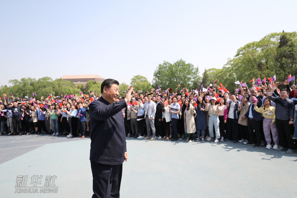 ↑2022年4月25日上午,習(xí)近平來到中國人民大學(xué)考察調(diào)研。這是習(xí)近平向師生們揮手致意。