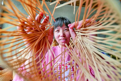 貴州省三穗縣八弓鎮(zhèn)界牌村,返鄉(xiāng)青年楊杜娟在制作竹編產(chǎn)品。新華社發(fā)