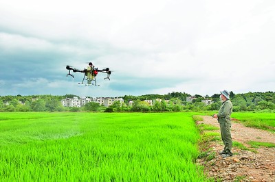 孫宏飛操作無(wú)人機(jī)進(jìn)行植保。光明圖片