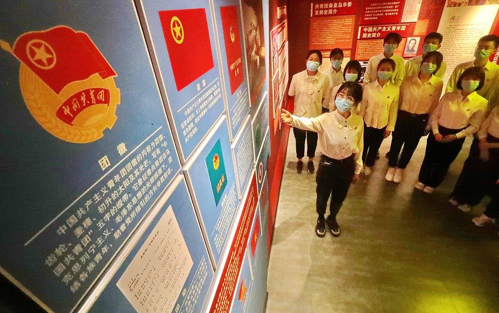 △2022年5月3日,位于河北省秦皇島市的共青團海港區(qū)委團史館,國網秦皇島供電公司團員正在參觀學習。