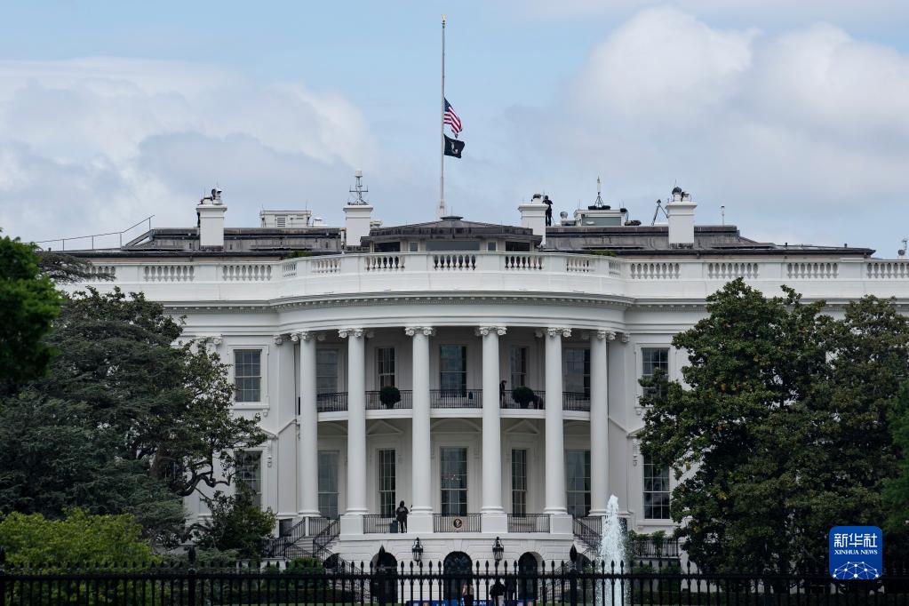 5月12日,美國華盛頓白宮降半旗悼念新冠逝者。新華社記者劉杰攝