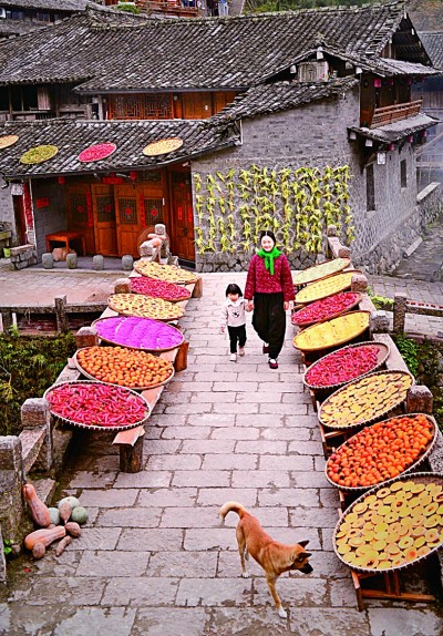 溫州市永嘉縣楠溪江曬秋,回味舊時(shí)光。