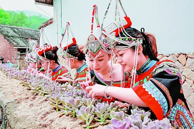 麗水市景寧縣東坑鎮(zhèn)深垟村村民在打理多肉植物。村里種植的400多個(gè)品種近70萬盆多肉植物,熱銷江、浙、滬等地區(qū),成為村民致富的新渠道。 景寧縣委宣傳部供圖