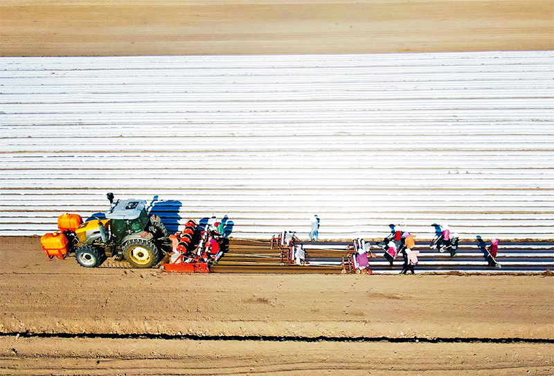 耕地是糧食生產(chǎn)的命根子。近年來,各地持續(xù)推進農(nóng)田水利設(shè)施和高標準農(nóng)田建設(shè),加快良種、先進農(nóng)機裝備攻關(guān)和推廣應(yīng)用,不斷提高農(nóng)業(yè)綜合生產(chǎn)能力,促進農(nóng)民致富增收。圖為2022年4月29日,工作人員在國家現(xiàn)代農(nóng)業(yè)示范區(qū)——河北省張家口市塞北管理區(qū)農(nóng)業(yè)基地播種胡蘿卜。 新華社發(fā) 武殿森/攝