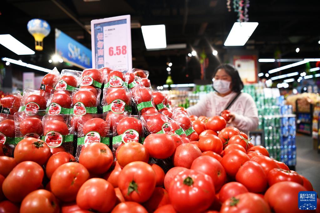 5月16日,消費(fèi)者在貴州省遵義市余慶縣一家超市選購蔬菜。新華社發(fā)(王永娟攝)
