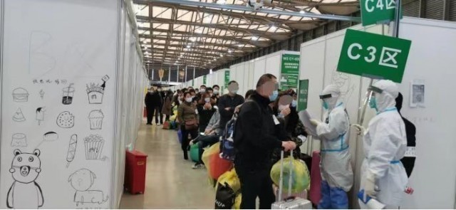 到達(dá)新國博方艙醫(yī)院的第一天,方燕紅心理沒有底,連著進(jìn)了三次艙,把情況帶回駐地反饋給隊(duì)員!皼]有見過這么大的方艙!我們醫(yī)院在武漢接管過最大的方艙就1500張床位,而新國博有著14000張床位!苯(jīng)過實(shí)地勘察,發(fā)現(xiàn)從三區(qū)兩通道、醫(yī)用防護(hù)物資、護(hù)士站配備到標(biāo)示標(biāo)牌全部已經(jīng)就位,心里很快有了底!叭蕽(jì)醫(yī)院管理團(tuán)隊(duì)前期已經(jīng)做足工作,迎接我們的到來。有時(shí)凌晨兩三點(diǎn),也總能聯(lián)系到仁濟(jì)護(hù)理部,及時(shí)給我們解決問題。”方燕紅說。