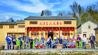 安徽省金寨縣大灣村位于大別山腹地,圖為大灣村民自編自演農(nóng)耕秀。汪誠攝/光明圖片