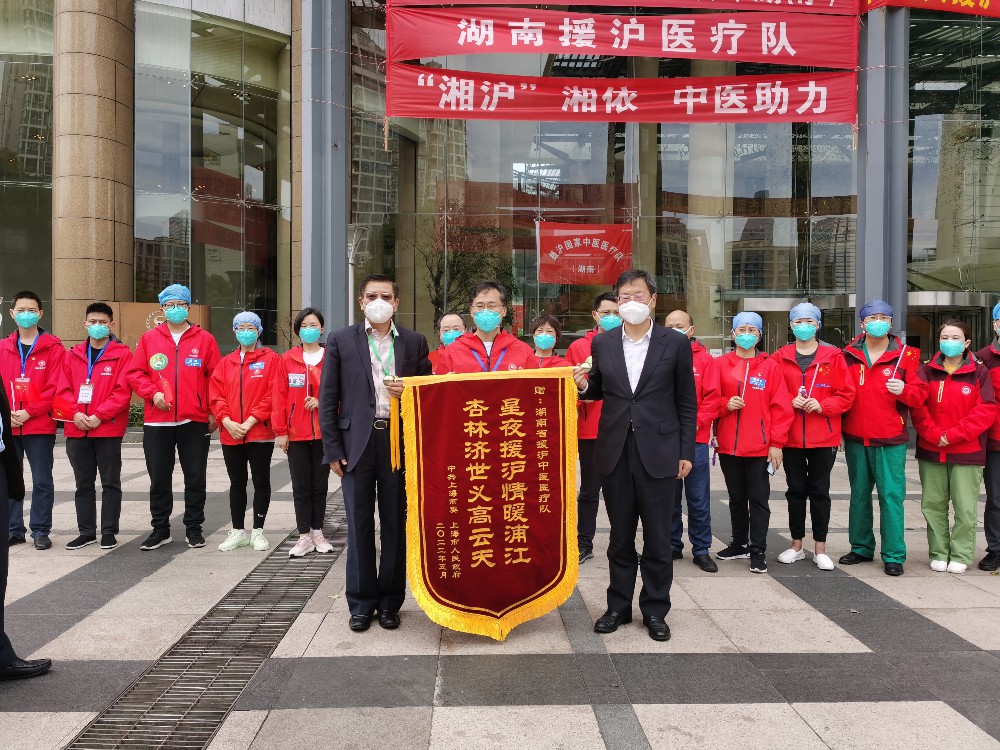 為湖南省援滬中醫(yī)醫(yī)療隊送上錦旗