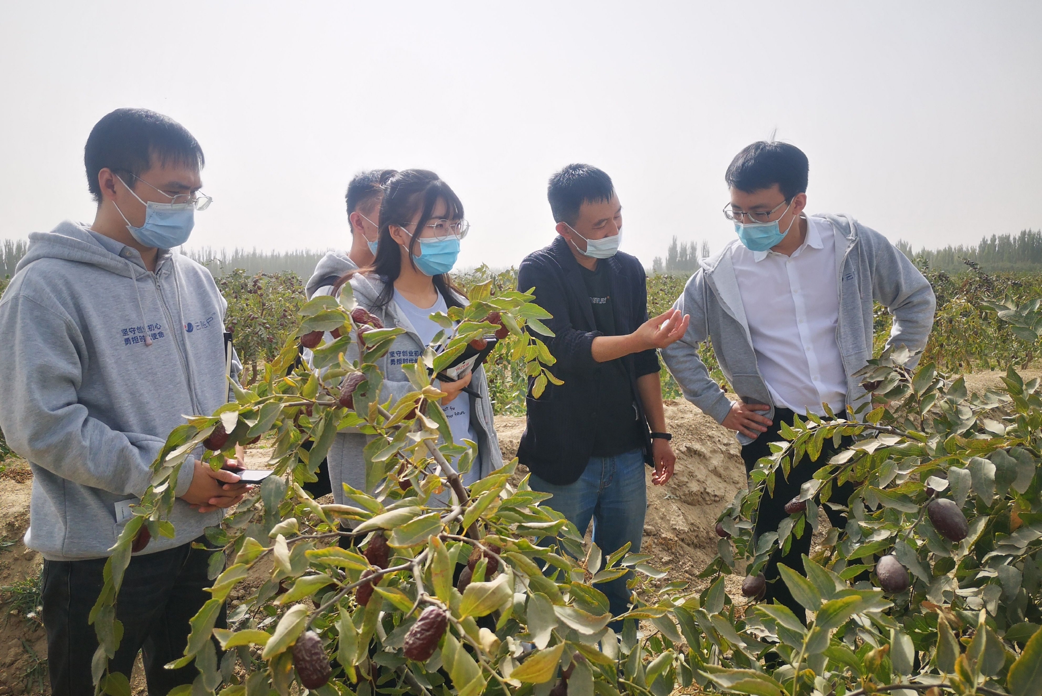 2020年10月,楊暉帶隊在鄉(xiāng)村調(diào)研紅棗種植產(chǎn)業(yè)(右一為楊暉)。受訪者供圖