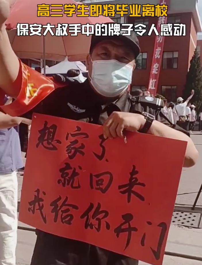 保安大叔手中舉牌暖心送別