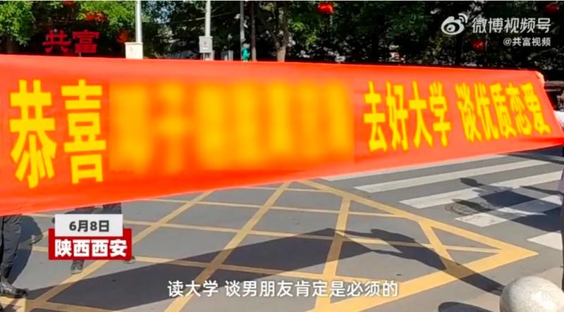 在考場(chǎng)外拉起橫幅: