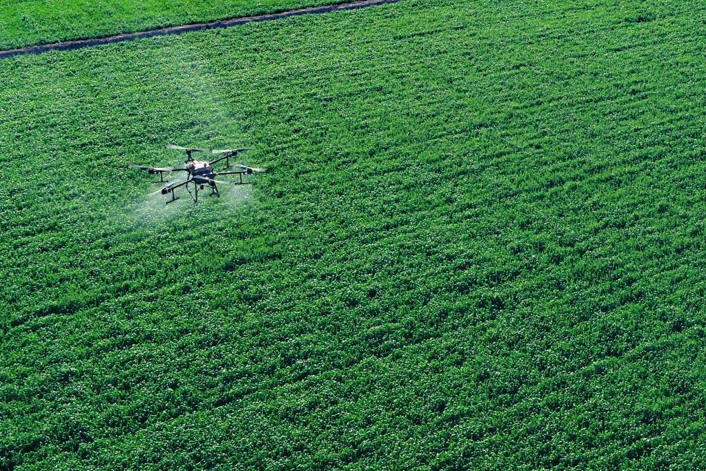 內(nèi)蒙古巴彥淖爾市臨河區(qū)農(nóng)戶利用無人機(jī)給小麥噴藥。(受訪單位供圖)