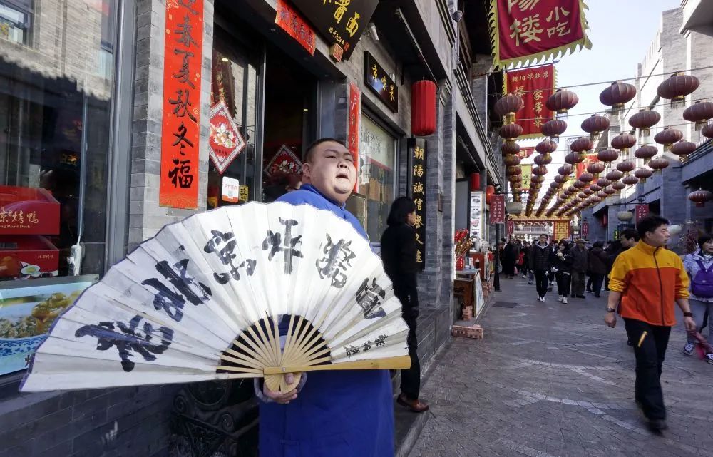 北京前門大街一家老字號(hào)的工作人員在門口迎客(2017年2月5日攝)。新華社記者 李欣 攝