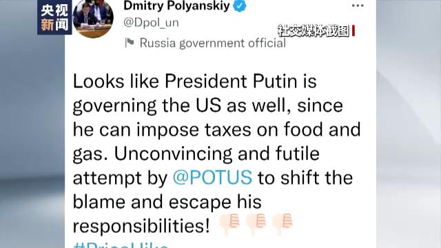 同一天,波利揚(yáng)斯基在社交媒體上批評(píng)稱,美國總統(tǒng)拜登企圖推卸和逃避責(zé)任,這樣的行為是難以令人信服的,也是徒勞的。
