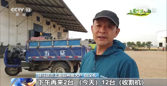 駐馬店市上蔡縣種糧大戶 白漢禮:今天上午10臺(tái)車,下午再來(lái)2臺(tái),12臺(tái)車,明天再增加2臺(tái)。