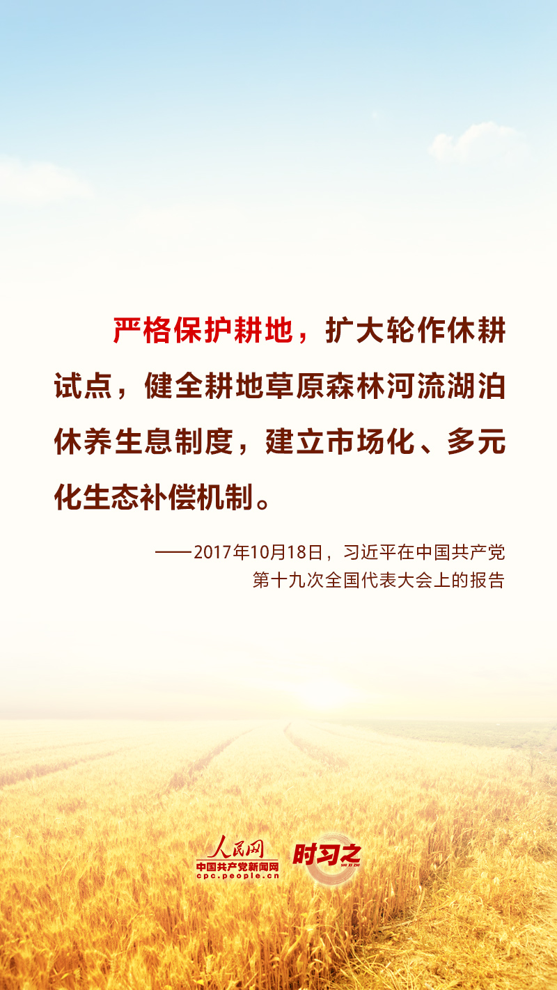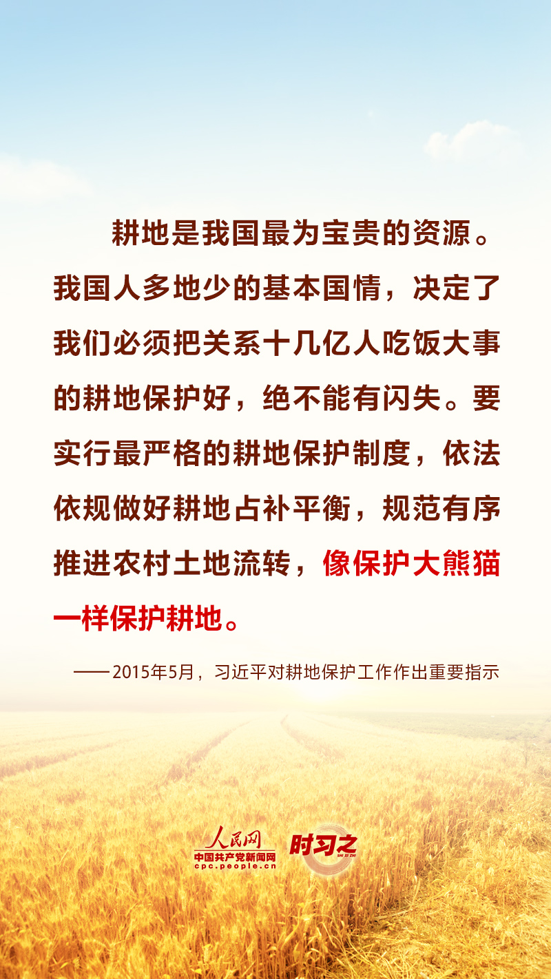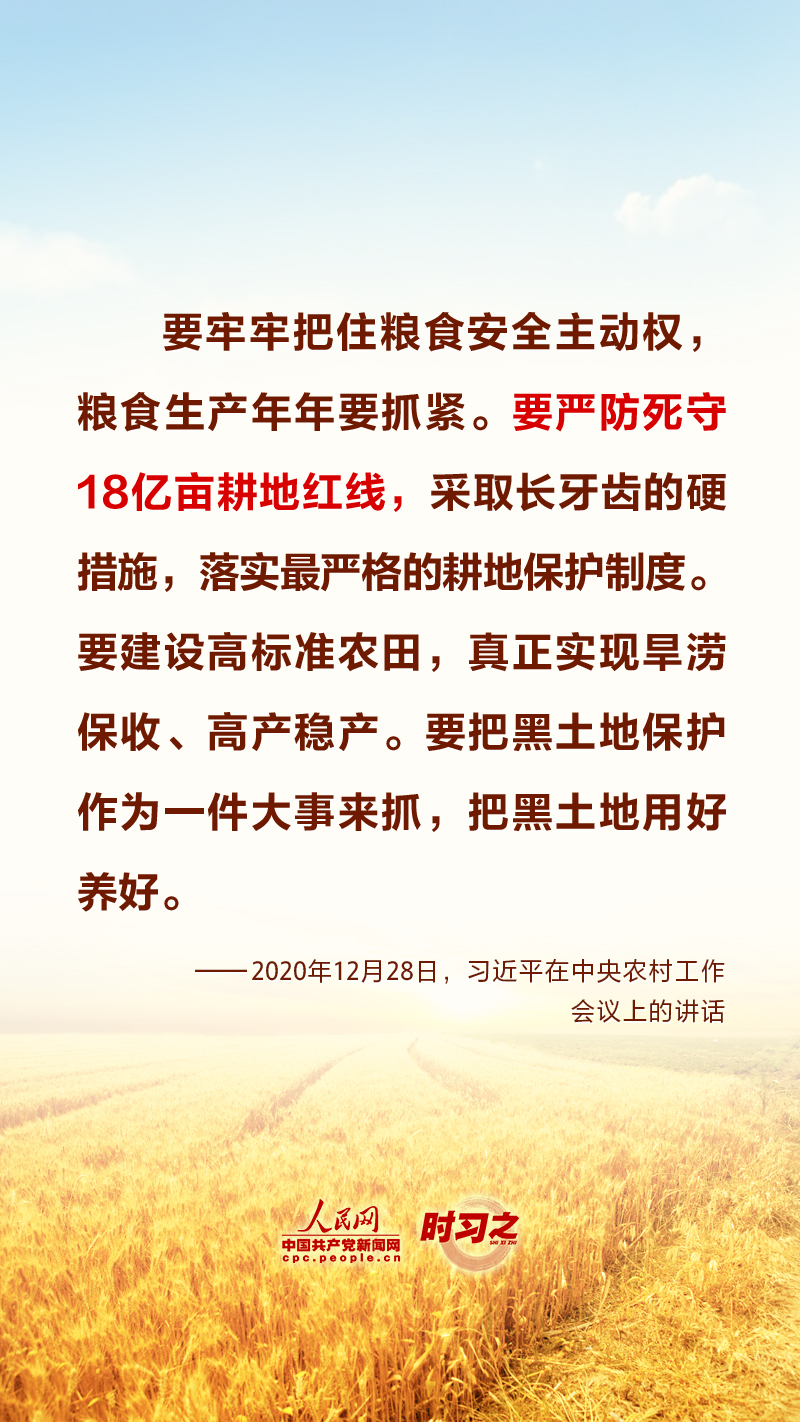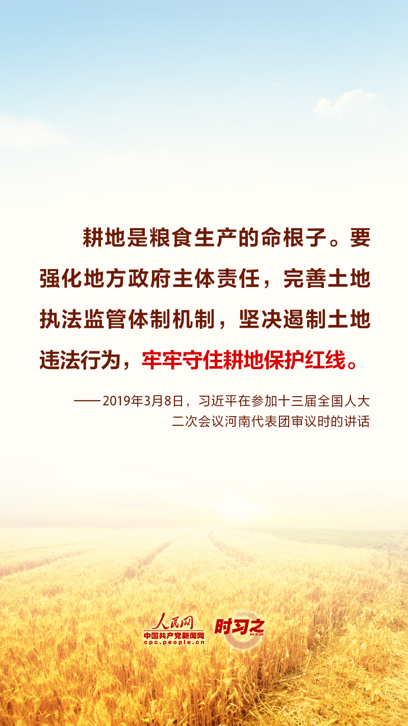 “民非谷不食,谷非地不生!奔Z食安全在習近平總書記心中有著特殊的分量,他多次深入田間地頭察墑情、看苗情、問收成,明確指出“耕地是糧食生產的命根子”。耕地是我國最為寶貴的資源,堅持藏糧于地、端穩(wěn)中國飯碗,“希望的田野”終將麥浪滾滾、稻花飄香。