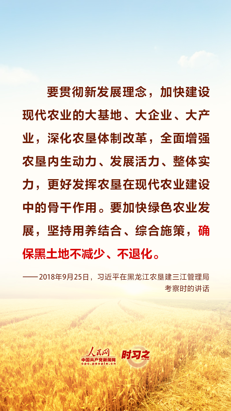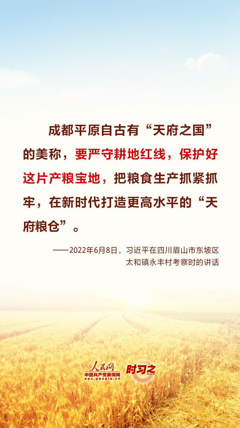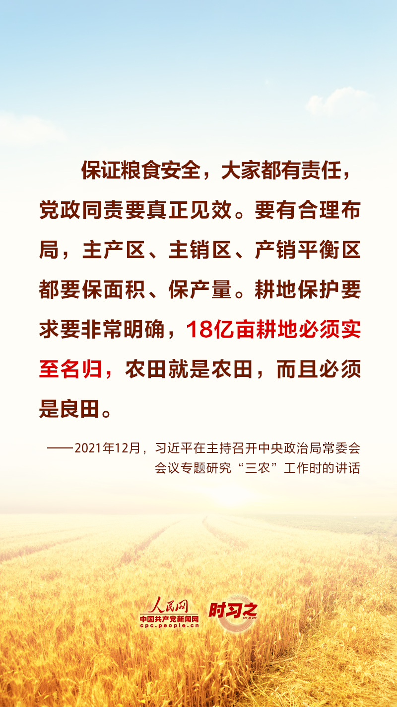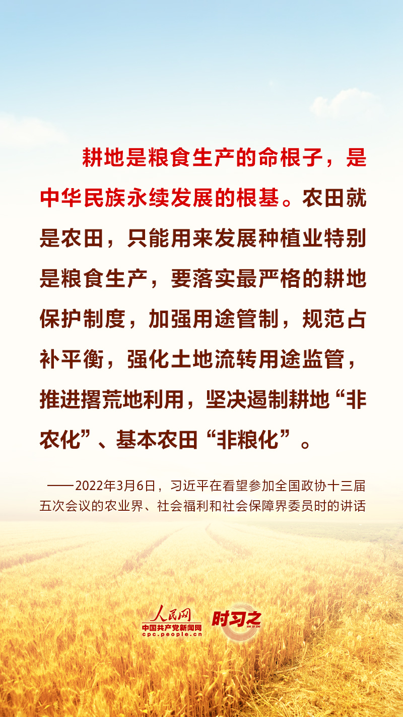 “民非谷不食,谷非地不生!奔Z食安全在習近平總書記心中有著特殊的分量,他多次深入田間地頭察墑情、看苗情、問收成,明確指出“耕地是糧食生產的命根子”。耕地是我國最為寶貴的資源,堅持藏糧于地、端穩(wěn)中國飯碗,“希望的田野”終將麥浪滾滾、稻花飄香。